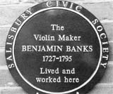 With the first edition of my publication on Benjamin Banks swiftly approaching its end, and many people over the last two years or so asking a formidable number of questions appertaining to it, it seems an appropriate moment to record some of the salient experiences. Although this is a light-hearted approach, I started with the premise that if an author does not give ample proof of a statement then it is liable to be a fiction, so here are a few of my reminiscences. I knew over 40 years ago that two Banks violins had been bequeathed to the Salisbury City Council, so decided to investigate. On arrival at the old public library in Castle Street, the librarian, without leaving his desk, pointed to a tall bookcase opposite: “There, on the top: help yourself,” and continued writing. With the assistance of a chair, I was just about able to bring down an ancient twin case with at least an inch of library dust on it: no exaggeration. My hanky was totally inadequate to cope with the situation, but had to do. When the dust had settled and after much ado getting the case clasps working, I confirmed the two violins inside were certainly by Banks and good examples, but in a dilapidated condition. It was my first encounter with his work, so with reverence I returned them to their “sarcophagus” and did my best to clean up their resting place. My “thank you” was received with no more than a nod, but when I reached the door my taciturn friend looked on and said with a twinkle in his eye “next time you come, bring a couple of dusters!” - he wasn’t such a bad chap after all! In 1985, having made a private vow to put Banks securely on the map, I found the same twin case and one of the violins in the care of a local amateur player and in good playing order. The other was missing but what I had overlooked all those years ago, tucked away in the top of the lid, hidden by 19th century tousled fabric, was a very fine bow, obviously by John Dodd but branded by Banks. These two items eventually formed part of the exhibition. So much of Salisbury is as it was in the 18th century. Without this stability, the fascination experienced in tracing Banks’ environment would have been minimal. For instance, many of the same buildings are still standing in Catherine Street, where a plaque, unveiled by local violinist Iona Brown, now marks the Banks’ premises and workshop. It was a relatively simple matter to establish that James Banks sang in the cathedral choir for three years and was probably educated at the day school for choristers from the Cathedral Library records. Earlier researchers certainly laid some false trails. For instance, when checking Banks’ marriage date nothing was found by following the accepted premises that it took place at St. Martin’s church; could this be due to a missing page in the register? The puzzle was solved on examination of St. Edmund’s church register where it was plainly stated. I was nearly tripped up here, as it was about then that the calendar year changed from 1 April to 1 January, Salisbury, I believe, has a unique system that divides the city into squares that are called chequers. The poor rates ledgers reflect this in their quarterly title pages and make-up. They are a very important source of information. In Banks’ case they tell us exactly when he took over his uncle’s business, when he died in 1795 and the transfer of the business to James and Henry the same year, also when it changed hands in l811. The burning question still remaining was with whom did Banks serve his apprenticeship? Only after much more searching was this information found, but not locally. Very few people seem to know about the Apprentice Books at the Records Office, Kew. I certainly didn’t until my first visit. Fortunately in the 1920s some kind soul, bless him, rescued them from the Inland Revenue vaults and voluntarily undertook the gigantic task of cross-indexing the 79 huge ledgers, so large that they are brought on a trolley to the only area capable of holding them for inspection - the map room. They cover just over 100 years of tax collecting on Apprenticeship Premiums. Without the index, the task of pinpointing would have been nigh on impossible. As it was, I needed four visits to achieve a result; suddenly, there it was: “Will Huttoft of New Sarum, Wilts. Instrument maker - Benjamin, son of John Banks, June 24th 1741. Premium £20. Duty paid ten shillings, July 26th 1742.” The tranquillity always associated with such “holy places” was shattered by my oral excitement. “If looks could kill”, seemed to be on the countenances of adjacent readers… The two largest estates in Wiltshire are Wilton House and Longford Castle, both within a few miles of Salisbury. No research is allowed at Wilton House but it occurred to me on more than one occasion that the Banks family could have lent a helping hand in the carving of the violin motif that adorns the famous violin cabinet there? (No offence to Chippendale of course, but the Earl of Pembroke was a customer after all.) The Earl of Radnor at Longford Castle was more sympathetic, so that through his archivist Nancy Steel, direct references to Benjamin Banks came to light; for instance, his charge for tuning the harpsichord and many other musical items from personal diaries that have survived. By now I had acquired a typewritten copy of Benjamin Banks’ Will and codicil from the Hill archive, so there seemed no reason to obtain another except that originals always have the aura of their own. Just one visit to the Record Office, Chancery Lane, soon located Banks’ index entry, so a Photostat copy was made. The actual Will, drawn up in 1791, carried Banks’ usual neat signature whereas on the codicil of 1794 his signature is reduced to an almost unreadable scribble, indicating a serious decline in health, so the visit to the office paid dividends. One might ask what this has to do with violin making? Very little but a