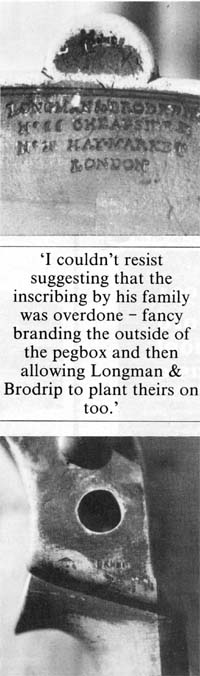 Published in The Strad Magazine Vol. 102 No. 1214 June 1991 ALBERT BANKS ON THE NHS Albert Cooper, biographer of Benjamin Banks, has a mysterious visit from famous English maker, over the airways… My closest friends pull no punches when it comes to frankness: ‘For goodness sake get a hearing aid’ they told me for several years during which they had to put up with repeating themselves. The situation was not getting any better so, courtesy of the NHS, one was installed in my left ear. The resulting whistles which burst forth before aid and master came to terms disturbed them considerably; now the cry was “that thing is no good, you’re better off without it” - not with any malice, mind you, but it was all sorted out. These whistles eventually became inaudible to outsiders, but quiet sounds persisted in my head, and occasionally a name seemed to be trying to get through. Now I am not the sort of person (like the violin maker The Reverend G. L. Tweedale) who believes in the supernatural, so I was puzzled and not a little intrigued. Having forgotten one night to remove my aid, sleep was forgotten, as the name Benjamin Banks seemed clear. More from curiosity than anything else I said, “don’t disturb me, I am trying to get to sleep”. “Ah, so at last I’ve got through to you. This is Benjamin Banks and I want a word with you about all the stuff you have written about me and my family”. I was beginning to recover from my original shock and was able to blurt out, “Oh, so you know about that then?” “Of course I do, I’ve been watching your antics with great interest. It would appear that most information is correct, but why did you have to mention family planning, having ten children at such regular intervals, etc.? That was impertinent, to put it mildly”. I was getting a little annoyed by now and very curious, but all went dead. My curiosity got the better of me, so much so that I deliberately kept my aid in the next night, switched on of course. Would Banks come again? Sure enough he did, but this time I got in first. “Where are you speaking from?” was my first question. “How old are you?” countered Banks. “In my seventies. Why, what has that got to do with it?” “You’ll know soon enough, from that silhouette I sat for in Bath around 1790 you deduce that I rule my domain with a firm hand. You are right there, how else could I keep 10 children under control? Ann was too busy having them. I would have preferred you to say “well built” in your appendix rather than “rotund”. That silhouettist thought it was compliment to portray all sitters this way, I wished afterwards that it had been done in London”. At last I got a word in. “You sound a rather conceited man, which surprises me”. “Not as pompous as Stradivari!” retorted Banks. “I suppose he has a right to be, after all, he was the greatest. We all know that, but because one of his violins is called “the Messiah” he gets a little above himself. There is a rumpus whenever it is suggested that the great man himself did not make it, but of course J. B. Vuillaume (JBV to us), being a little big headed, is flattered and rather amused at the preposterous suggestion that he made it. Clever chap JBV swanks even now about making around 3,000 instruments all sold and paid for, so he said in a letter to his friend Peter Sylvestre. We think he gets unfair credit; after all he couldn’t have achieved much without the loyal support of his staff and my outworkers. We watch his recent rise to fame with interest, not to say envy”. Banks was not finished with me yet, he came back at a most inopportune moment to say the least, just as I was about to glue in a new bass bar. “Be quiet for a few minutes,” I pleaded, but to no avail. “We sometimes signed our instruments under the bass bar,” Banks said rather pompously. I was a little annoyed at this. “That was stupid,” and couldn’t resist suggesting that the inscribing by his family was sometimes overdone; for example, any branding on the outside of the pegbox and then allowing Longman and Brodrip to plant theirs over yours. It would have been much more helpful if you had labelled and numbered every instrument, JBV always did, well, almost always”. Banks cut in sharply. “What, and make researching easy for snoopers such as yourself, never! Don’t forget also that even in my day common work was being renamed and branded to command more money”. With BB in full flood I had by now given up hope of fitting that bass bar, in any case the situation was getting a little out of hand, and my ears were hotting up. Banks realised this and changed the subject. “I hope you have noted that we always fitted a separate bass bar, never was a belly shaped, leaving wood to form one as so many London cheapjacks did.” “Yes, I had noticed and have recorded it. Do you know that my work on your career has reached 14 different countries? So you are a worldwide celebrity now. But don’t get a swollen head, it wouldn’t become you. Besides, it would only distress Ann. As you inferred earlier, I am a busybody, but only on my readers’ behalf, so can you say whether The Banks Musical Emporium (posh description this) made double basses? Have I assumed correctly that you did not? I have yet to see one”. Before Banks could answer the battery went in my aid; it was like being cut off in the middle of a very interesting telephone call and having no number with which to ring back, so I have no option but to wait and listen. Will BB come back, or was it all a dream? |